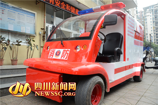 我們‘迷你消防車’長2米,寬只有1.4米,發(fā)生火災(zāi),小區(qū)狹窄的巷道都能開進(jìn)去! 宿岷瑤說,“迷你消防車”是根據(jù)社區(qū)情況專門定制的,不僅能穿梭在社區(qū)的大街小巷,而且能蓄水近一噸,車內(nèi)配有1個手抬機(jī)動泵、4個干粉滅火器、消防水帶、鐵鍬等等。同時,迷你消防車的水槍能噴射5層樓的高度,能第一時間遏制火勢蔓延。