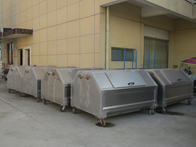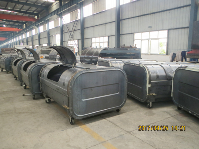 垃圾斗或?qū)S盟芰贤暗呐e升機(jī)構(gòu),可將容器內(nèi)的垃圾傾倒入壓縮機(jī)料斗及壓縮腔的機(jī)構(gòu);利用推缸油缸的往復(fù)運(yùn)動(dòng)驅(qū)動(dòng)推鏟推出、縮回,實(shí)現(xiàn)壓縮垃圾的功能。翻轉(zhuǎn)架裝置符合國家機(jī)械設(shè)計(jì)、負(fù)重機(jī)構(gòu)安全標(biāo)準(zhǔn)CJ/T29.2-79;所有運(yùn)動(dòng)副均采用了復(fù)合雙金屬軸承襯套,減摩降噪,運(yùn)轉(zhuǎn)平穩(wěn);垃圾桶翻轉(zhuǎn)架與投料口密封蓋聯(lián)動(dòng)操作,投料口密封蓋(上蓋)在翻桶時(shí)打開,在放桶時(shí)關(guān)閉。料斗有效寬度2400mm,容積3.0m3,適用于人工板車、三輪車和小型自卸車在內(nèi)的垃圾收集方式投料。效率比較高,是常用的翻轉(zhuǎn)形式。