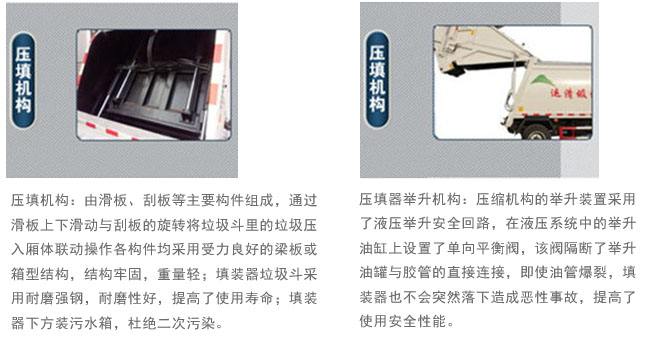 當(dāng)江淮6方壓縮式垃圾車填料斗裝滿垃圾后,刮板打開,滑板帶動刮板一起向下移動,插入垃圾中進(jìn)行破碎和壓縮,刮板向前回轉(zhuǎn),進(jìn)一步壓實(shí)垃圾,刮板到位后隨滑板向上移動,將垃圾壓實(shí)并裝填到垃圾箱中,然后回到起始位置。 整個工作過程自動控制,在垃圾連續(xù)不斷的壓填時,推鏟在擠壓力的作用下,克服背壓逐步后退,實(shí)現(xiàn)垃圾雙向壓縮并均勻充滿整個垃圾箱。