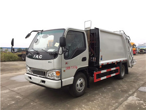 2. 江淮康鈴5-6立方壓縮式垃圾車:采用江淮康鈴1700寬?cǎi){駛室,軸距3308,江淮朝柴117馬力國(guó)五發(fā)動(dòng)機(jī),前橋2.5噸,后橋3.5噸,7.00R16鋼絲輪胎,帶ABS,有動(dòng)力轉(zhuǎn)向,氣剎制動(dòng)、無(wú)斷氣剎,有離合器助力,5檔變速箱。 垃圾車箱有效容積5-6立方米,弧形車廂或矩形車廂,材料采用邊3底4mm厚(均采用國(guó)標(biāo)Q345錳板制作),9支液壓油缸制動(dòng),不帶副壓板,液壓控制操作系統(tǒng)為控制和手動(dòng)控制。