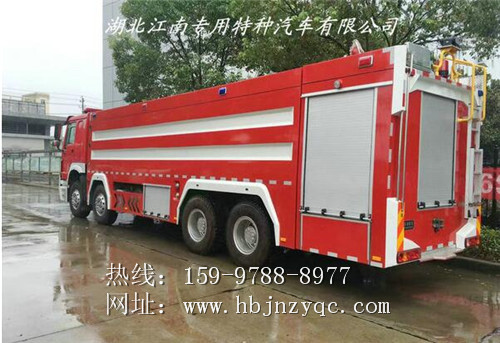 大型重型25噸消防車整車型號為:JDF5410GXFPM240型泡沫消防車符合國V排放標準,可載水25噸,整車滿載質量41噸,最高車速90km/h,水泵流量100L/s,工作壓力1.0MPa,配備威斯特PS80消防炮,射程大于80m,車身采用全鋁合金骨架結構,水罐采用優(yōu)質碳鋼鋼板整體焊接,內部采用特殊防銹處理。
