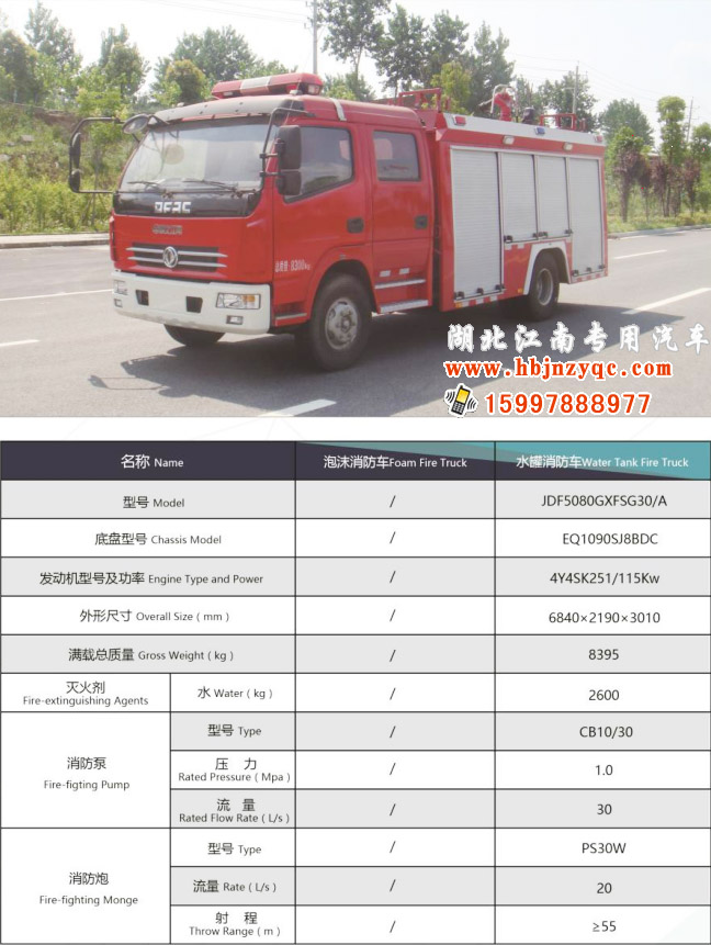 1. JDF5080GXFSG30/A型水罐消防車,采用東風(fēng)EQ1090SJ8BDC底盤改裝而成 , 底盤通過國家強制性產(chǎn)品認證;發(fā)動機排放符合GB17691-2005第五階段限值的規(guī)定要求(國Ⅴ標準)