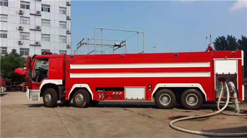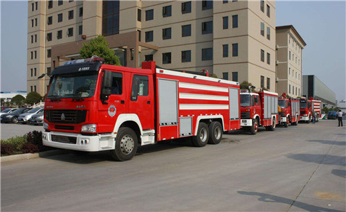 干粉消防車(chē):主要裝備干粉滅火劑罐及整套干粉噴射裝置、消防水泵和消防器材等,可以撲救可燃和易燃液體、可燃?xì)怏w火災(zāi)、帶電設(shè)備火災(zāi),也可以撲救一般物質(zhì)的火災(zāi)。對(duì)于大型化工管道火災(zāi),撲救效果尤為顯著,是石油化工企業(yè)常備的消防車(chē)。重汽豪沃7噸干粉二氧化碳消防車(chē)、重汽豪沃7噸干粉泡沫聯(lián)用消防車(chē)