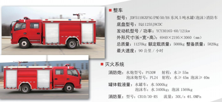 | JDF5110GXFPM50/E6型泡沫消防車 產(chǎn)品主要技術(shù)資料 | |||