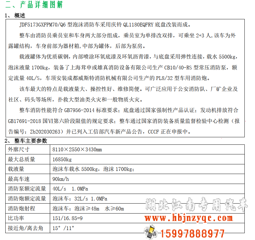 JDF5173GXFPM70/Q6型泡沫消防車 產(chǎn)品主要技術(shù)資料